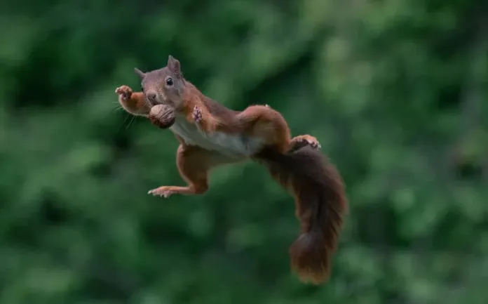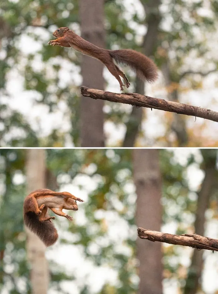 He says that the activeness of these squirrels are amazing and he as observed these animals to see that they keep their tails horizontal to their bodies to improve their aerodynamics while jumping.