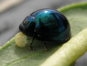 The Steelblue Ladybird is as much a garden superhero as it is a visual delight. Dressed in its shiny metallic blue, this little warrior feasts on aphids and other pests, keeping your plants healthy and thriving. And those beautiful blue pearls? They’re actually eggs, from which the next generation of garden guardians will emerge, continuing the fight against harmful insects.