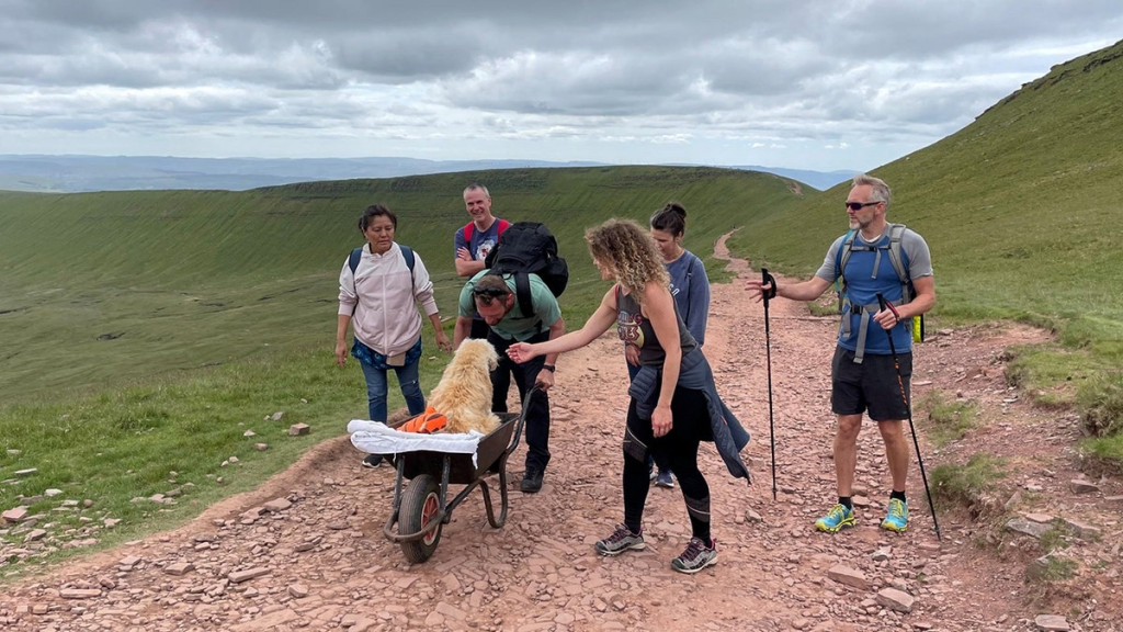 When they reached the summit of Pen y Fan, Monty rested in his cart, surrounded by fresh mountain air, the sky above, and people who loved him — even those who had just met him.