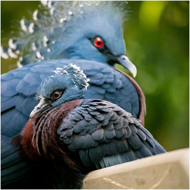 Nature and beauty are some things we humans get attracted towards. Nature’s beauty always touches our hearts so gently. Mother nature has many valuable expressions like rivers, waterfalls, mountains, trees, animals, oceans and even the simple tiniest creatures that can touch our heart. When wondering about the creations of nature this bluish-gray large pigeon takes our attraction. This bird known as The Victoria Crowned Pigeon has a blue lace-like elegant chest, maroon breast and irises which are red.